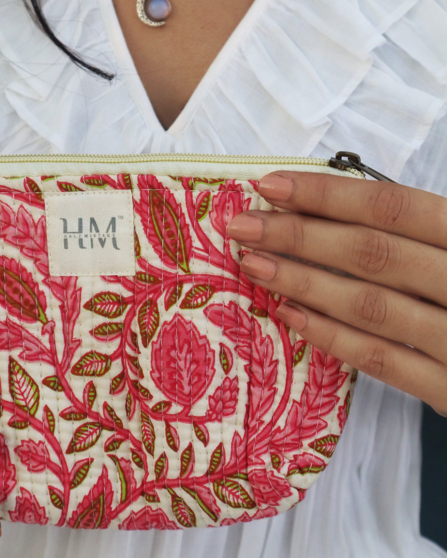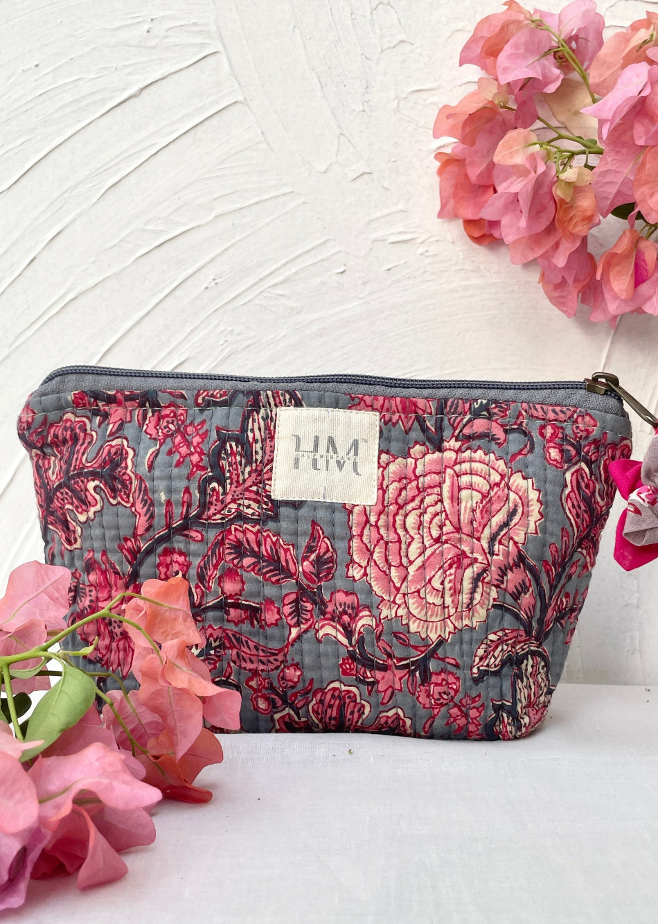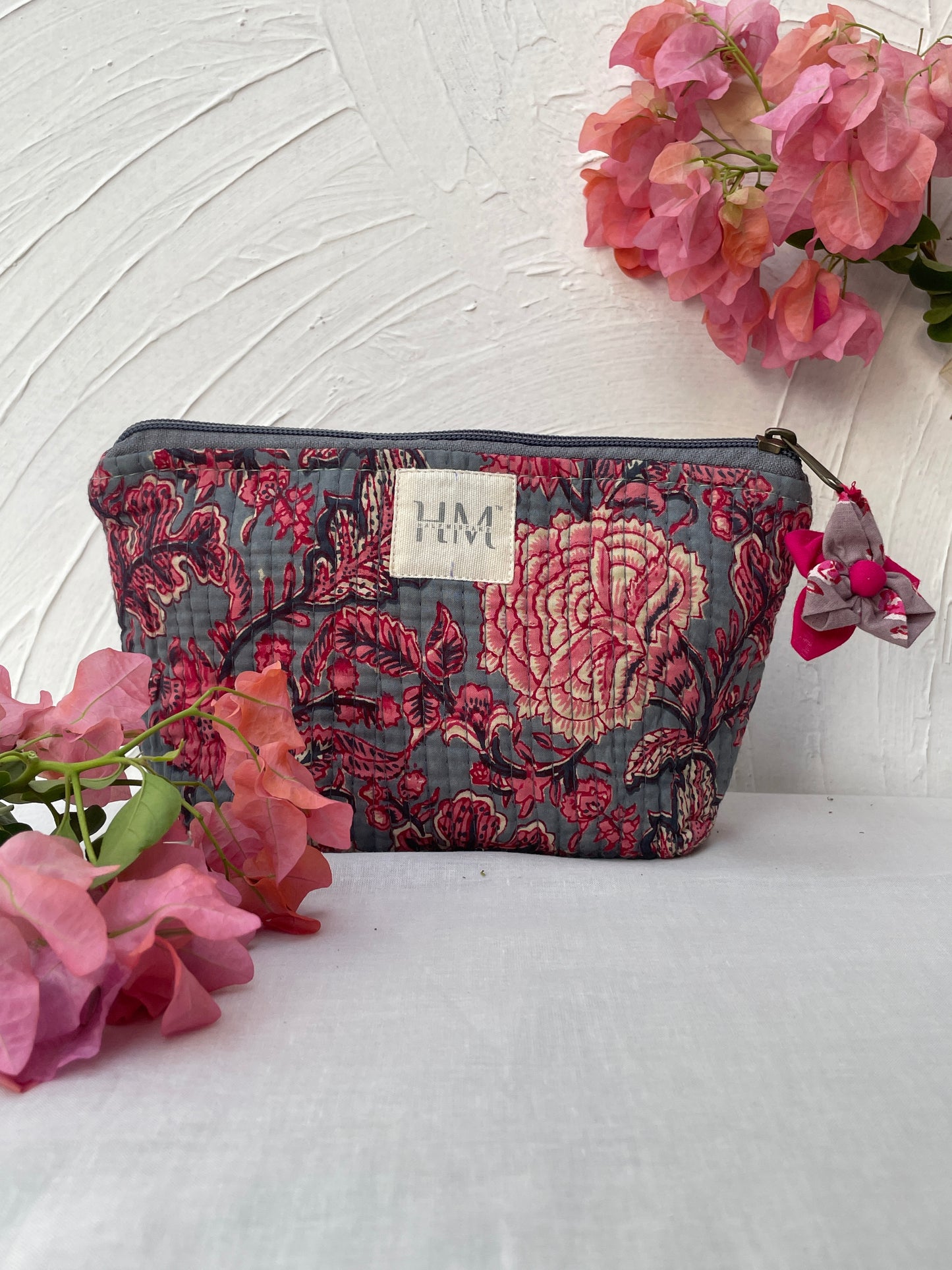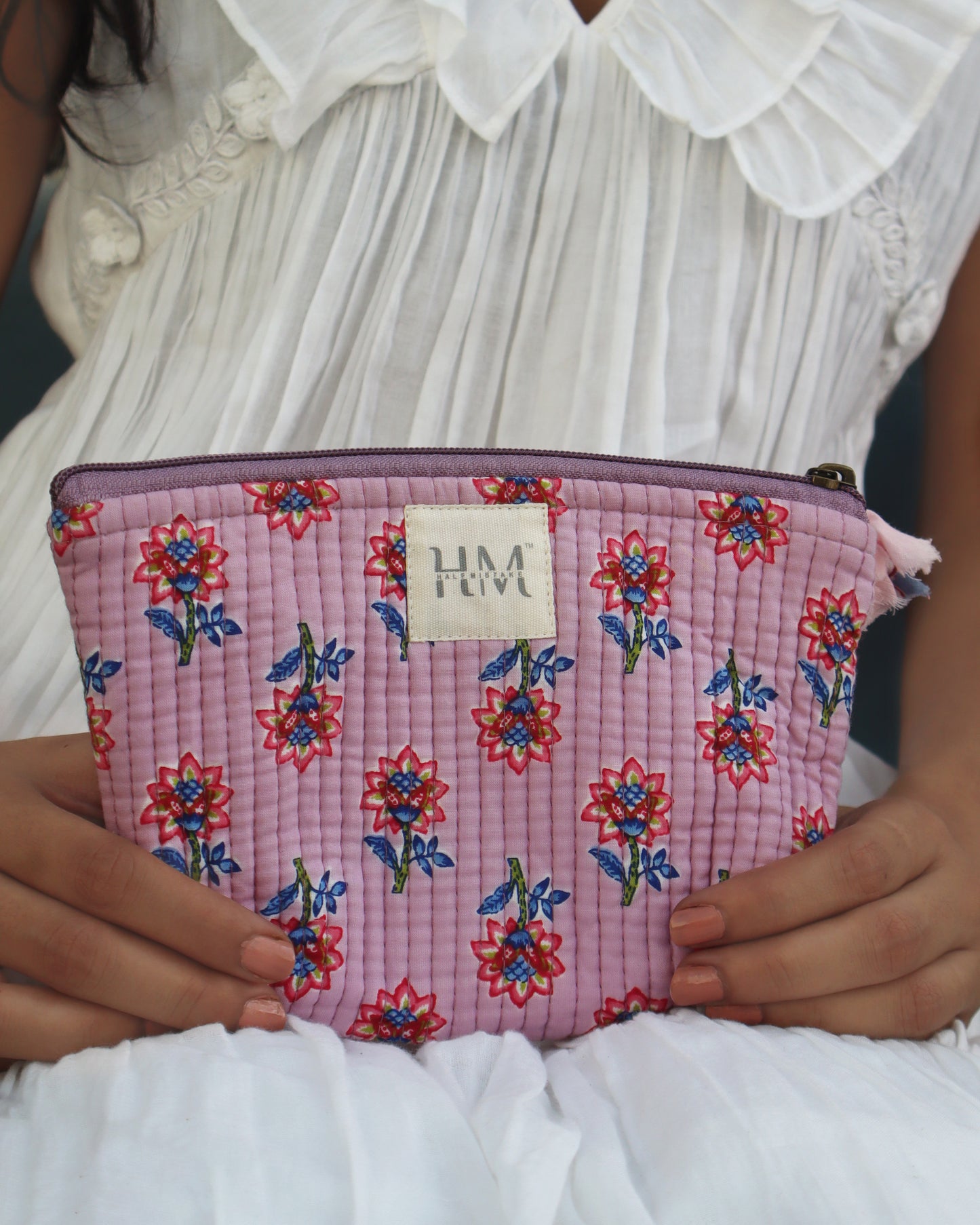 We have a little flower pattern pouch that's ideal for holding your keys, cash, and phone. Its lightweight cotton fabric and button closure make it the perfect bag for stylishly and conveniently carrying adorable tiny objects.