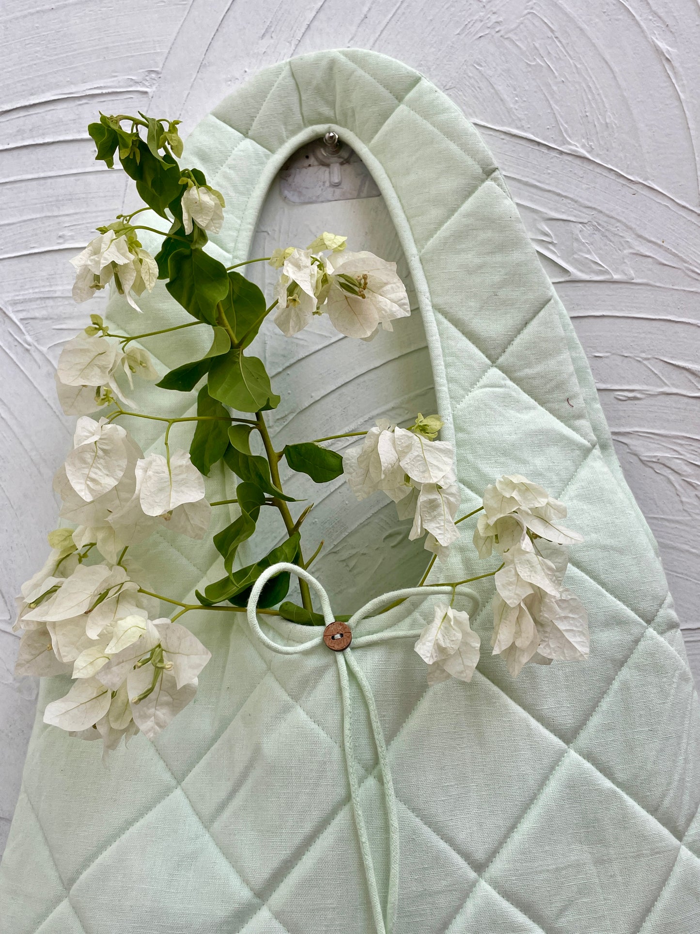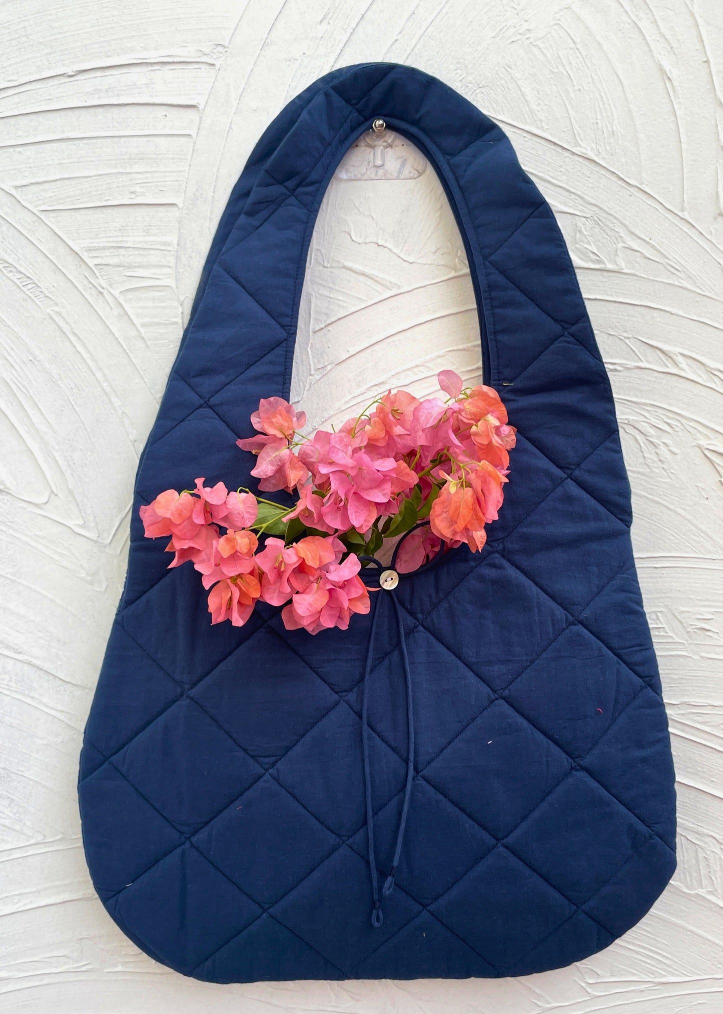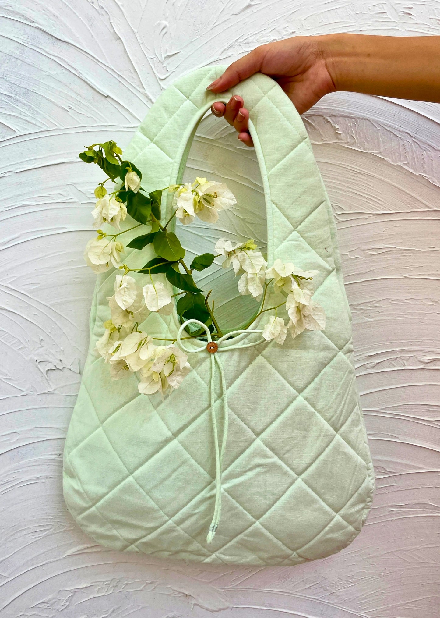 The soft, sustainable cotton fabric offers a gentle texture and lightness, while the puffy silhouette brings a modern, statement-making edge to your look. This bag is soft, sturdy, and stylish in equal parts. The spacious, secure zipper, front knot detailing.
