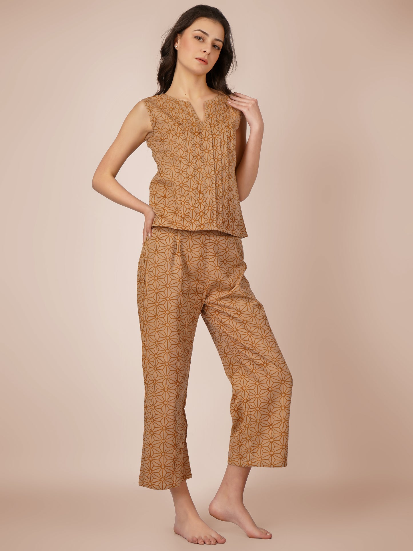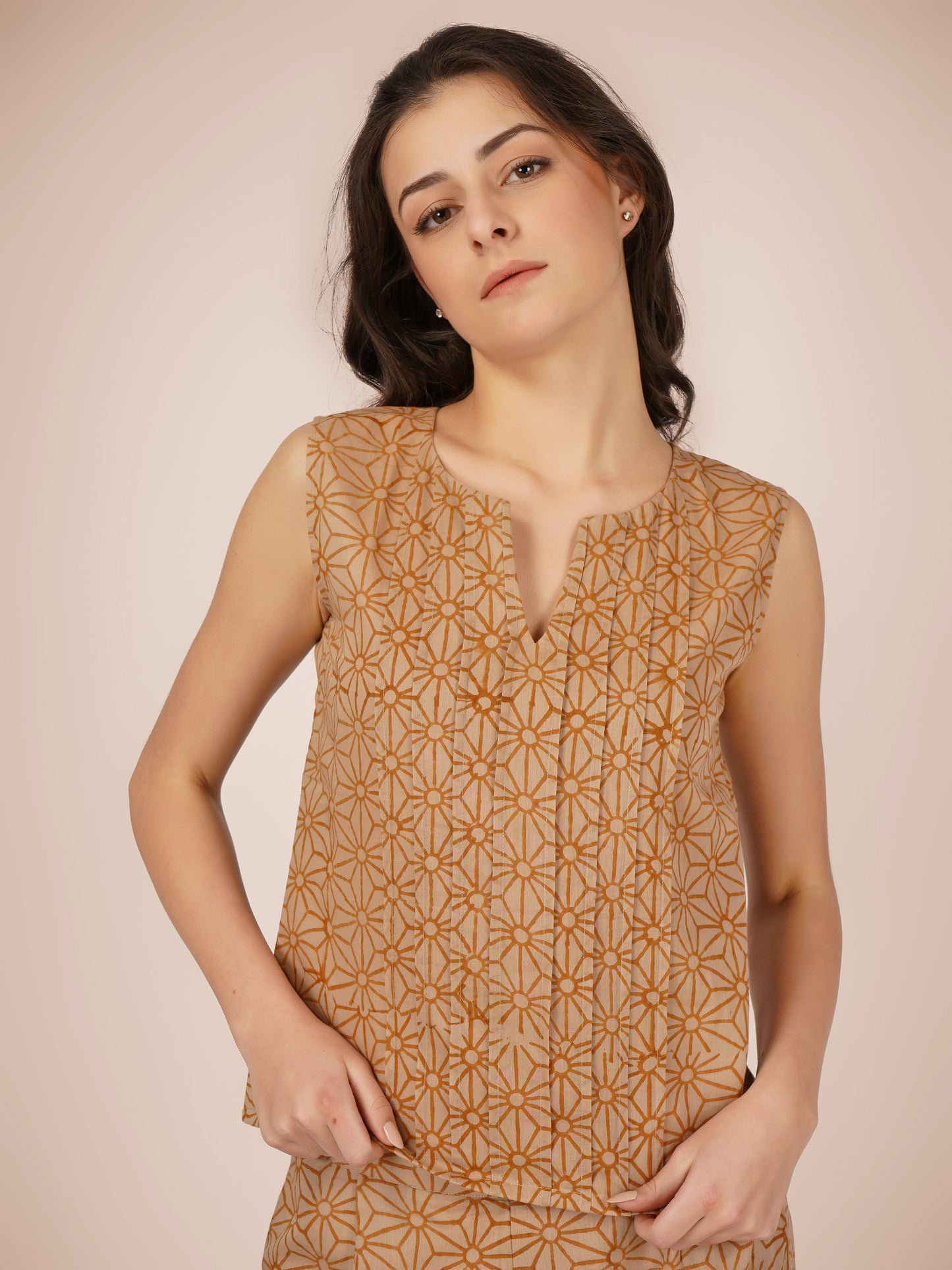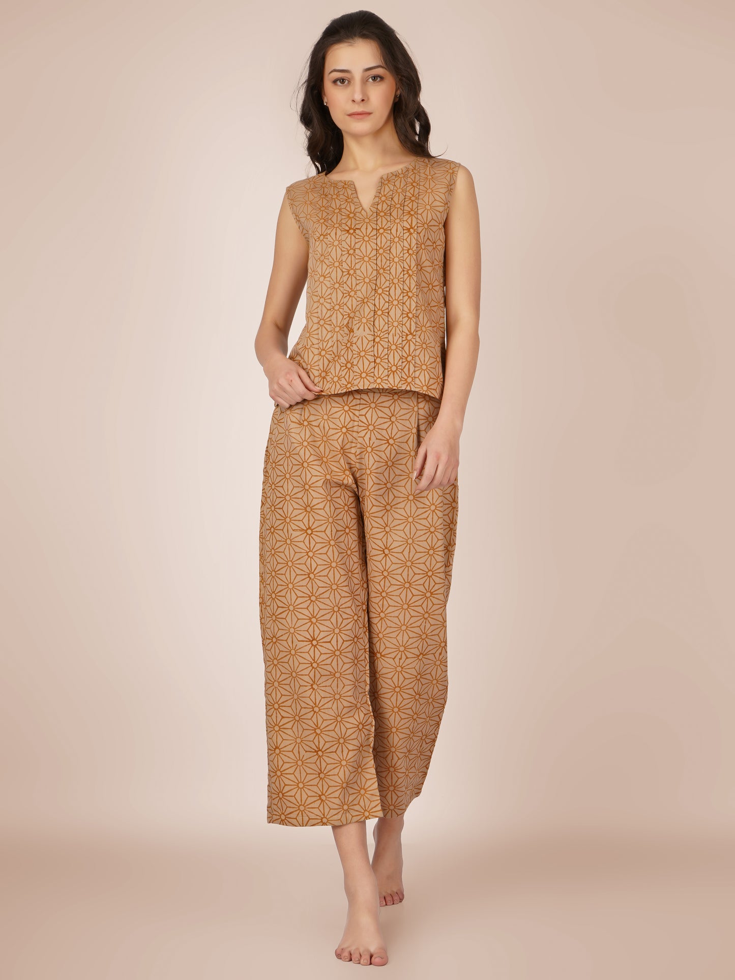 Brown Pintucks Co-Ord Set