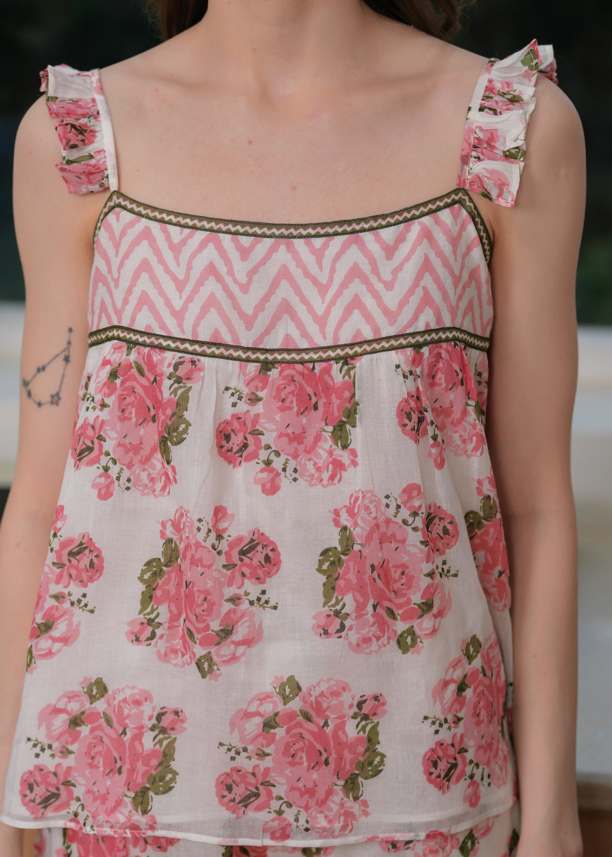 This pink sleepwear set blends comfort with elegance, making your favorite time of day. The airy short-sleeved top features delicate floral motifs, while the matching shorts come with an elasticated waist for a cozy fit. Designed for modern women who appreciate mindful living, this two-piece set feels -light and skin-friendly,