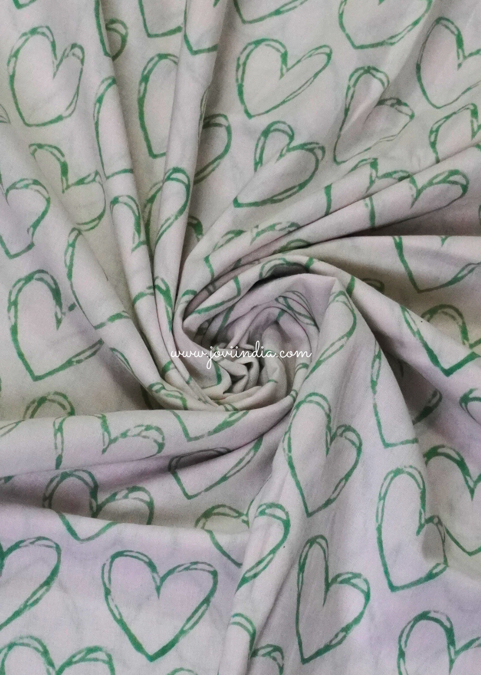 Heart Printed Cotton Block Fabric - Green