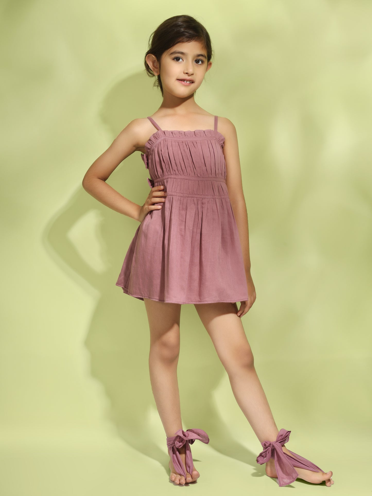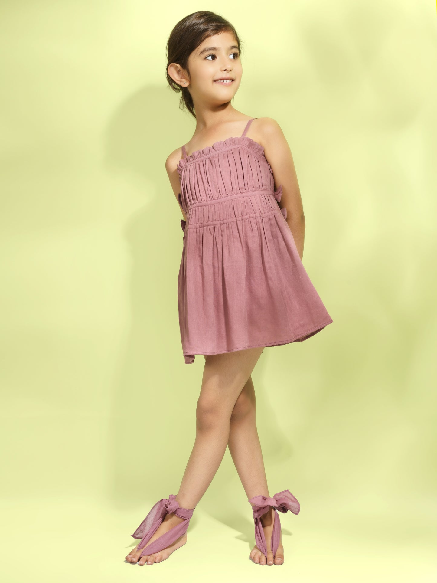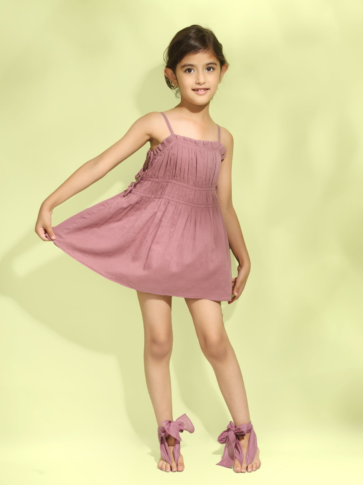 The elasticated bodice offers comfy fit, while the delicate strappy shoulders and side bow detailing flatters every silhouette.