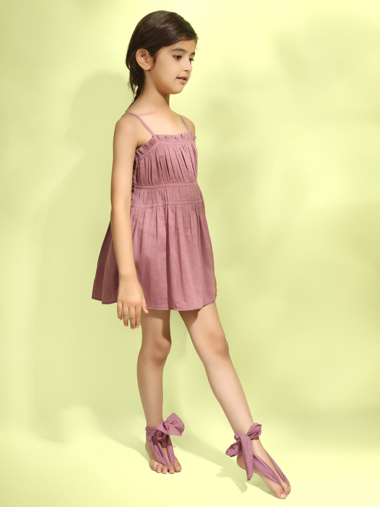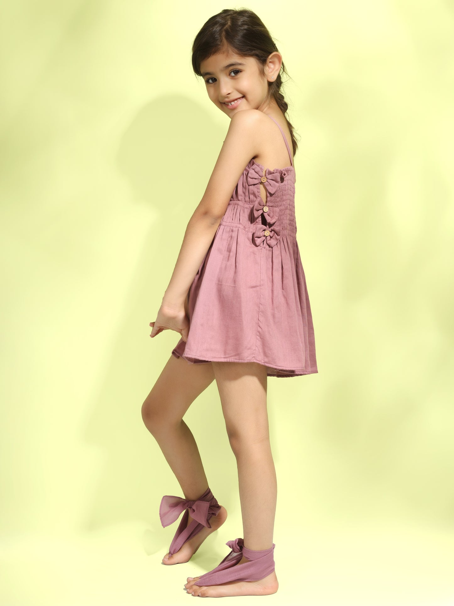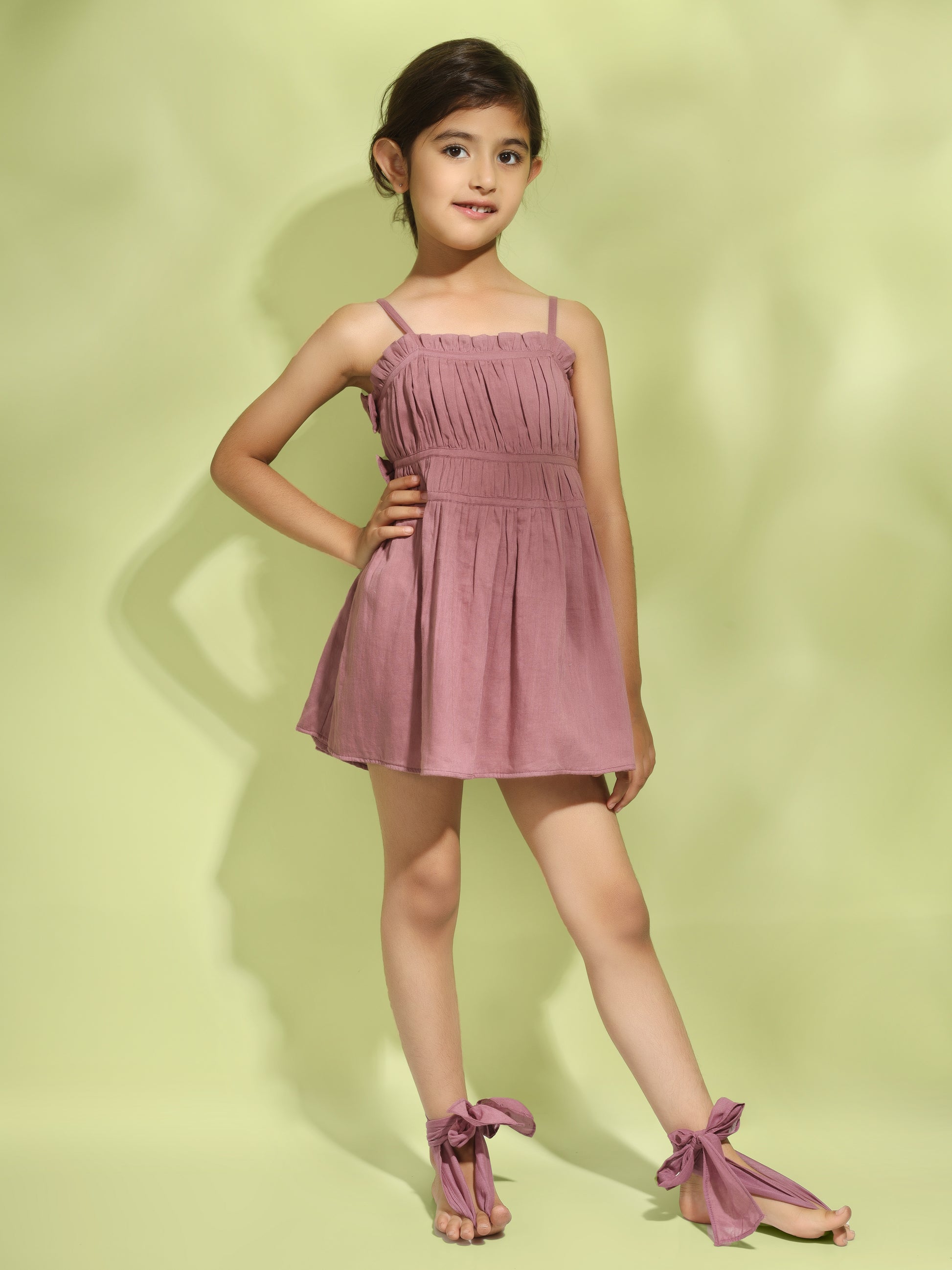 The elasticated bodice offers comfy fit, while the delicate strappy shoulders and side bow detailing flatters every silhouette.
