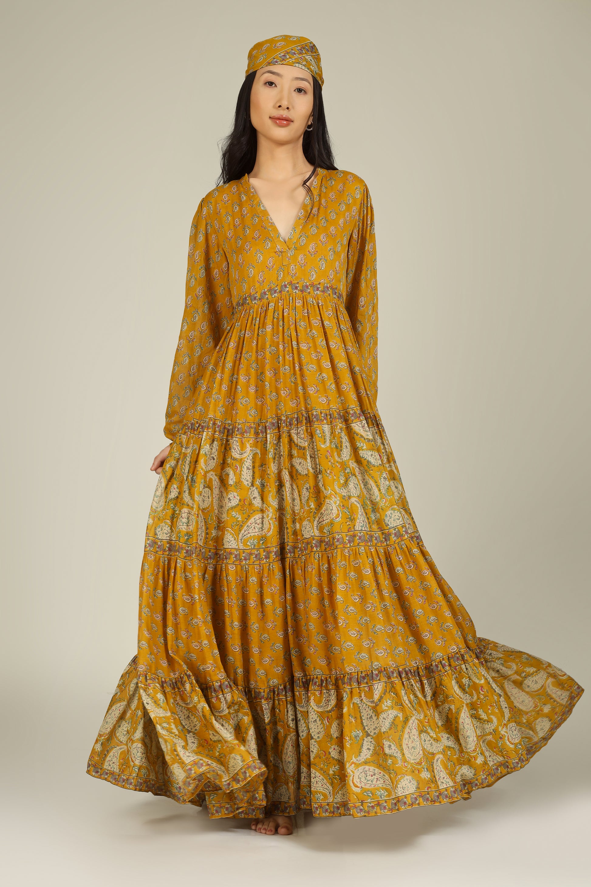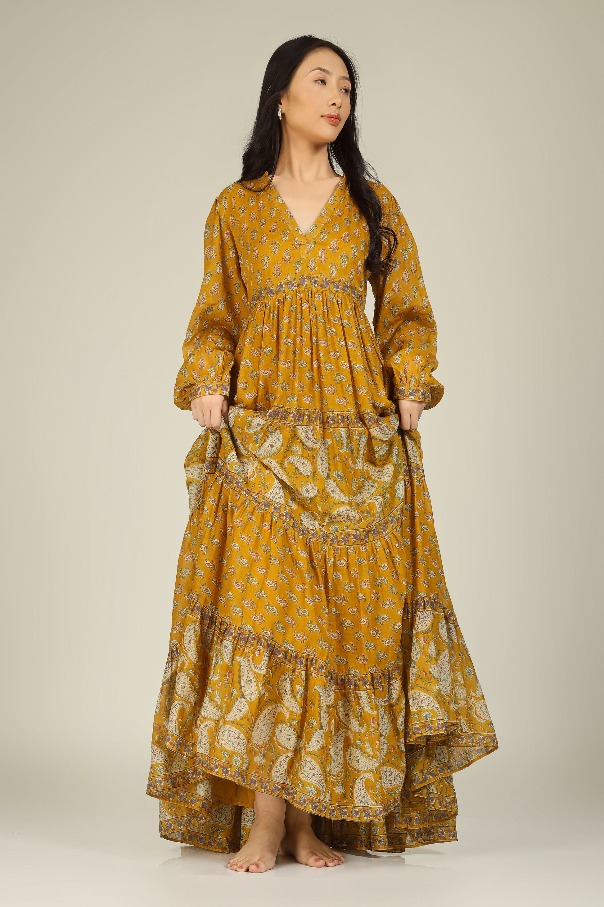 This dress made from breathable cotton mulmul fabric offers all-day comfort with a soft, flowy silhouette that flatters every body. Hand block print adds ethnic touch, while collar neck, gathers sleeves with cuff at end complete the look.