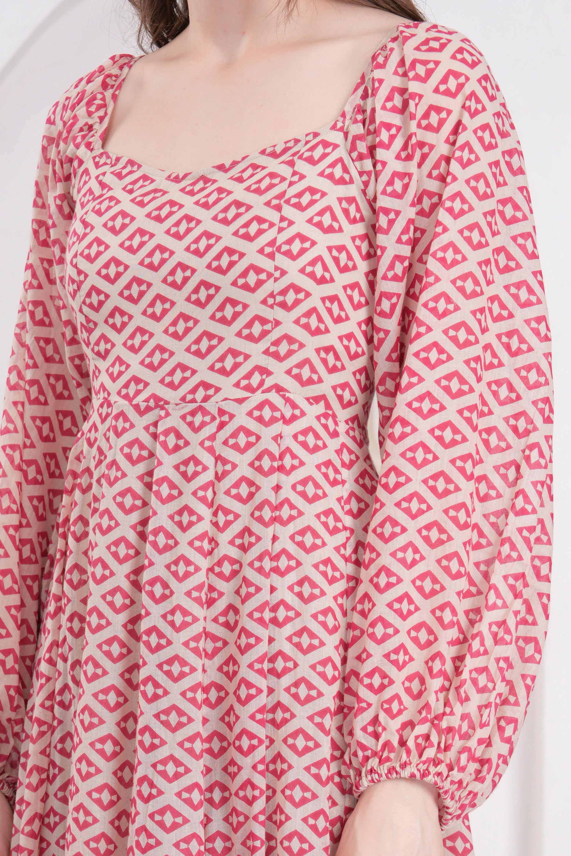 | Silhouette | : | Square Neck Balloon Sleeves dress |