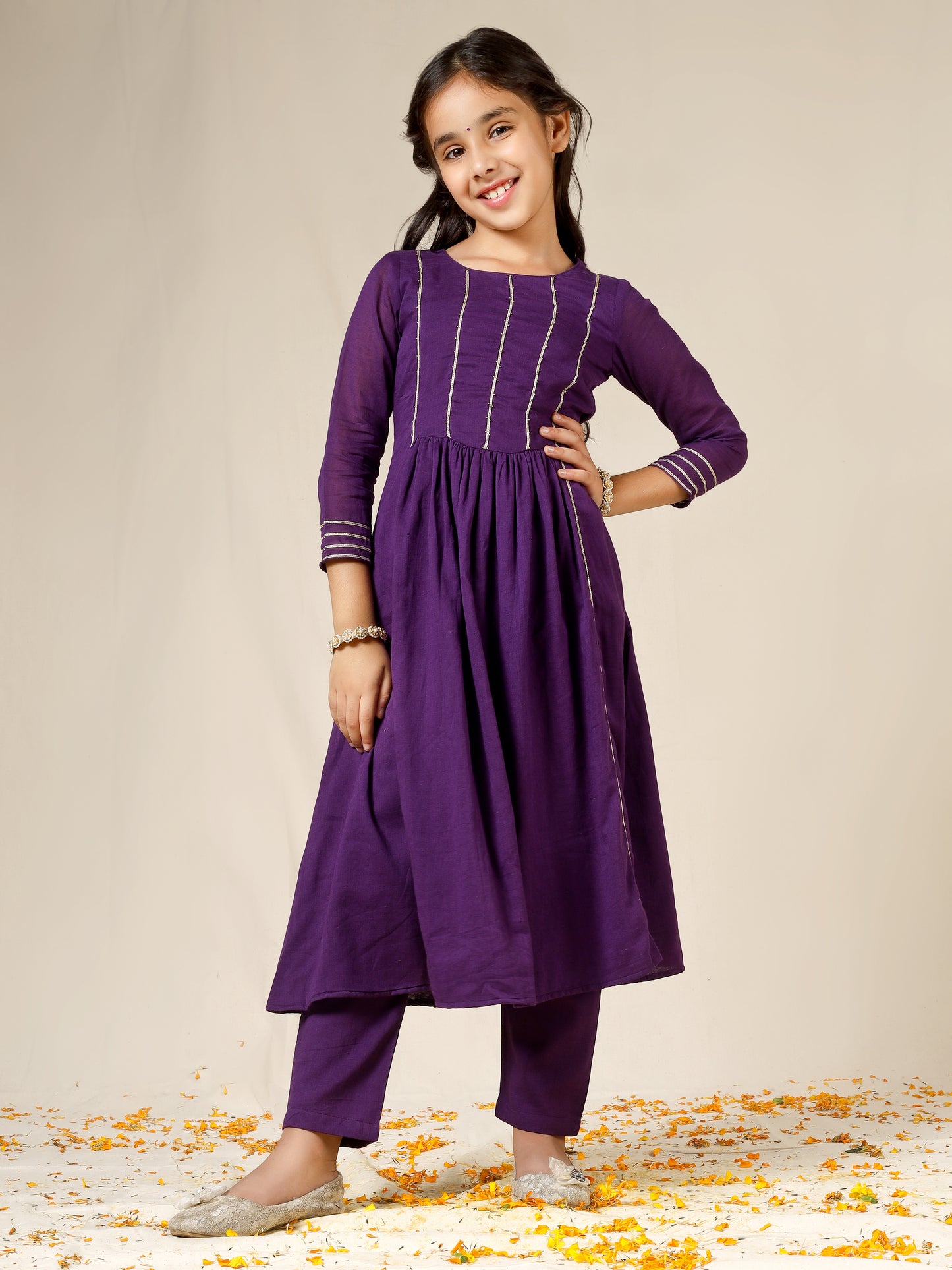 Yoke Pattern, gotta details, front gathers, tassels, moti details |