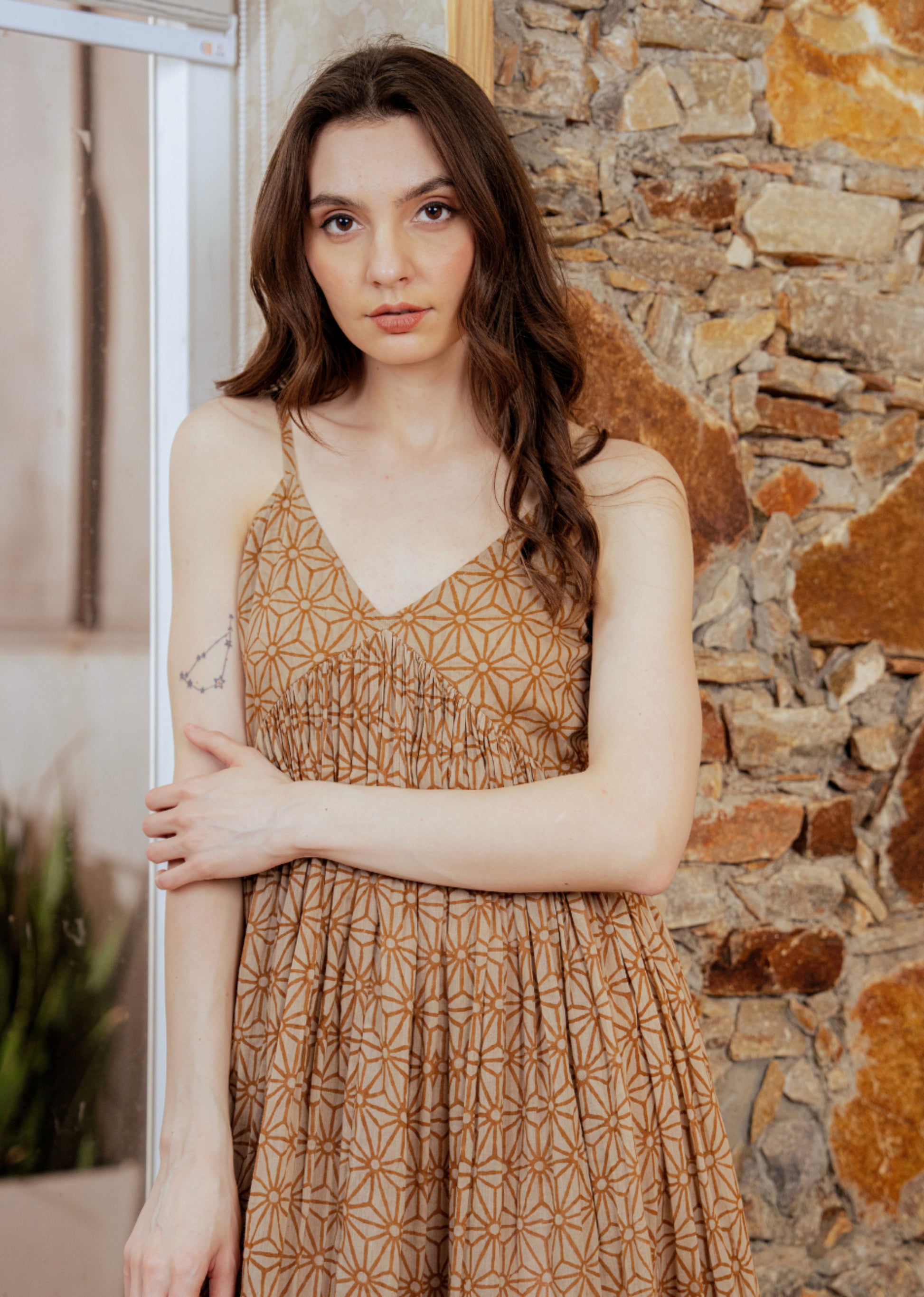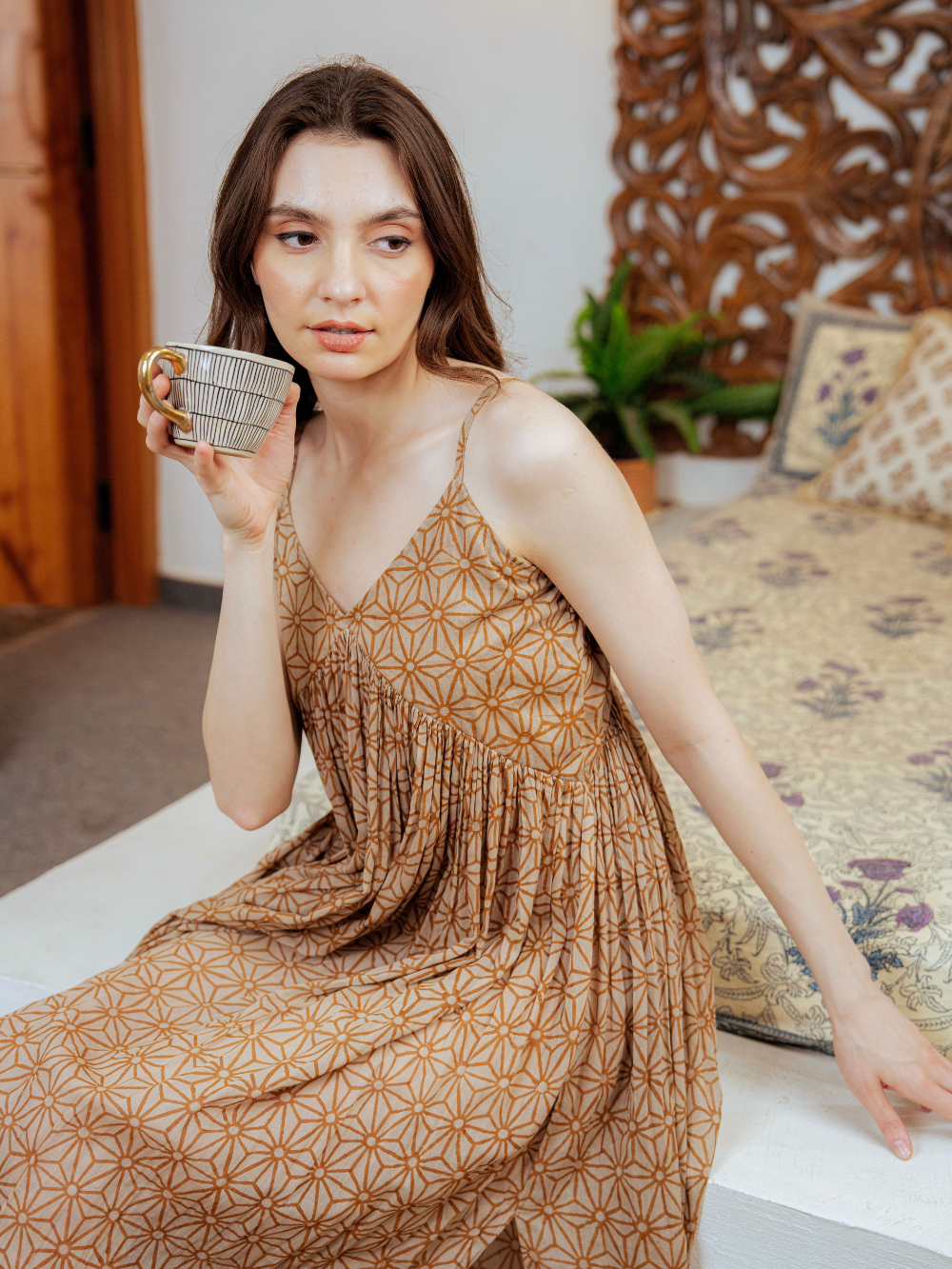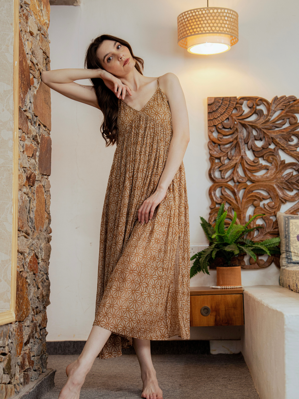 Experience effortless elegance with strappy printed maxi dress, a perfect blend of comfort and ethnic charm. Made from soft, breathable fabric, this dress feature strappy neckline and relaxed fit offer an airy, flattering silhouette,